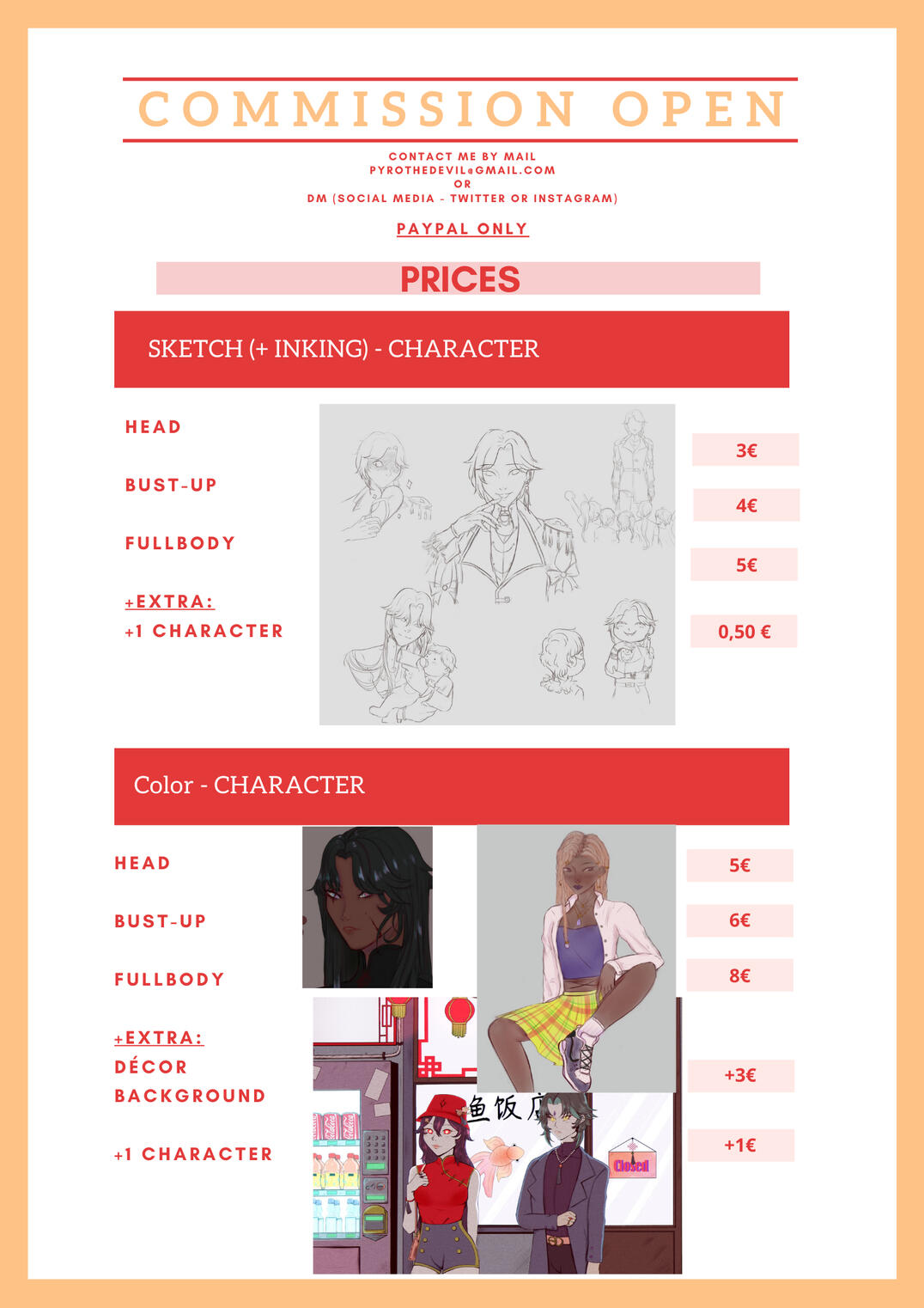 If you’re looking for something not stated here, feel free to contact me so we can discuss it, so please contact me by email or DMs (social medias)
